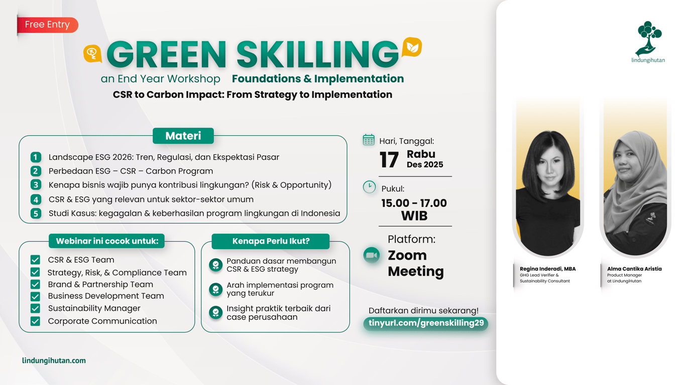 Menjawab tantangan tersebut, LindungiHutan meluncurkan Green Skilling Series, rangkaian workshop akhir tahun bertema “From Strategy to Action: Building Measurable Green Impact for Business.” Program ini dirancang untuk memperkuat kapasitas perusahaan dalam memahami, merancang, dan mengimplementasikan program keberlanjutan yang terstruktur, praktis, dan relevan dengan konteks industri masing-masing.