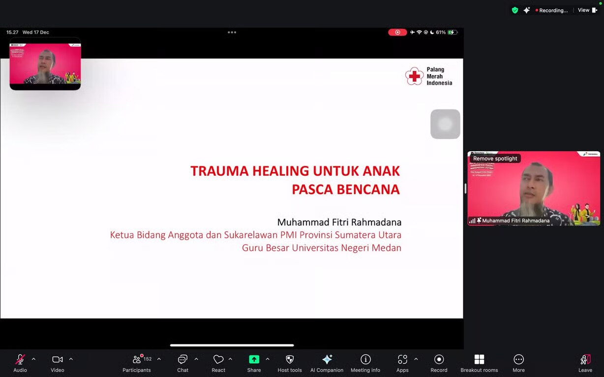 Ketua Bidang Anggota dan Sukarelawan PMI Provinsi Sumatera Utara, Muhammad Fitri Rahmadana, menegaskan bahwa kesiapan relawan muda menjadi elemen penting dalam penanganan bencana yang berkelanjutan.